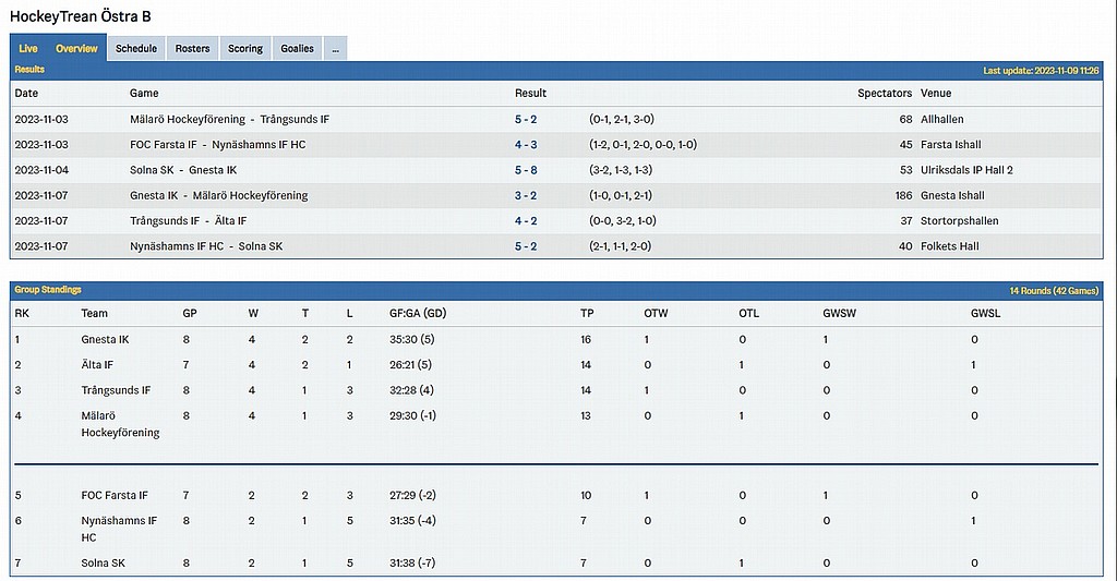 Nästa hemmamatch spelas 18/11 18:30.